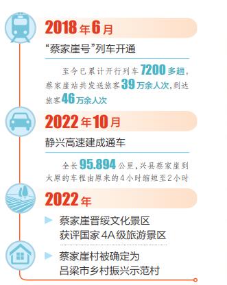 和王先生一樣,近年來,很多游客選擇乘坐火車到蔡家崖旅行,而蔡家崖的村民們很多會乘坐火車到外地上學和工作。據(jù)蔡家崖火車站值班站長蔣偉介紹,自2018年太原至蔡家崖的列車開通以來,已累計開行7200多趟,該站發(fā)送旅客39萬余人次,到達旅客46萬余人次。