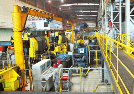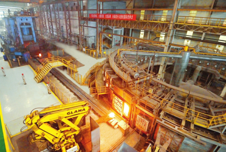 在環(huán)形爐控制室,俯瞰窗外火熱的生產(chǎn)現(xiàn)場,只見鋸切、加熱、預(yù)成型、成型、軋制、壓彎各工序井然有序,智能高效的生產(chǎn)場景令參觀者嘖嘖稱贊。