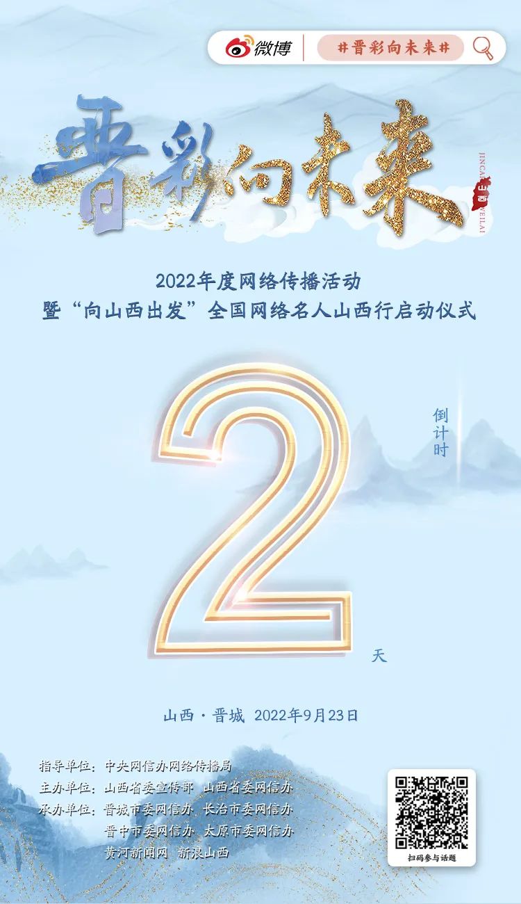“晉彩向未來”年度網(wǎng)絡(luò)傳播活動,是“非凡十年?奮‘晉’未來”系列網(wǎng)絡(luò)主題宣傳活動之一?;顒庸卜譃槎桃曨l征集活動、全國網(wǎng)絡(luò)名人山西行、優(yōu)秀作品展播三階段推進,目前短視頻征集已在線上預(yù)熱開啟?!皶x彩向未來”2022年度網(wǎng)絡(luò)傳播活動暨“向山西出發(fā)”全國網(wǎng)絡(luò)名人山西行活動將于9月23日正式啟動。