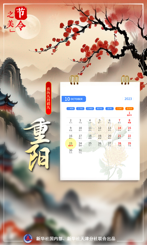 新華社天津10月22日電(記者周潤(rùn)?。熬湃拯S花酒,登高會(huì)昔聞?!?0月23日,農(nóng)歷九月初九,重陽節(jié)。歲歲重陽,今又重陽。農(nóng)歷九月初九緣何是重陽?其中蘊(yùn)含著怎樣的“數(shù)字密碼”?
