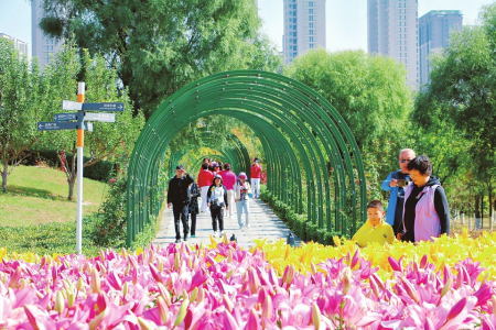 10月11日,正逢重陽(yáng),太原市晉陽(yáng)湖公園內(nèi)百合盛放、美不勝收,吸引了眾多市民前來(lái)觀賞。 趙夏雨攝