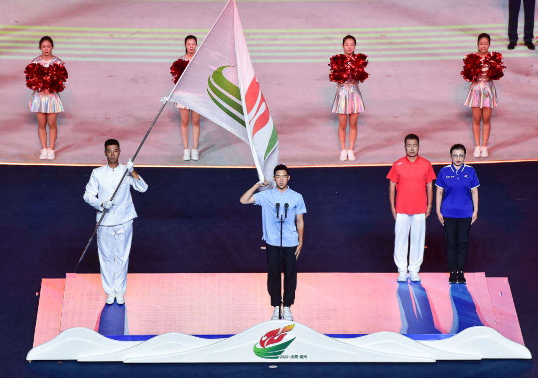 富有地域特色的暖場表演過后,在一萬多名現(xiàn)場觀眾聲震云霄的倒計(jì)時(shí)中,開幕儀式正式開始。國旗和會(huì)旗入場儀式后,各代表隊(duì)運(yùn)動(dòng)員、教練員在引導(dǎo)員和執(zhí)旗手的引導(dǎo)下,闊步入場。大同和朔州作為東道主,壓軸亮相,得到了觀眾的熱烈歡呼。之后,升國旗儀式和升會(huì)旗儀式莊嚴(yán)進(jìn)行,山西省第十六屆運(yùn)動(dòng)會(huì)宣布開幕。