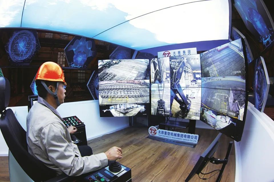 太重集團(tuán)推出的大型挖掘機(jī)5G遠(yuǎn)程智能操控系統(tǒng)進(jìn)行遠(yuǎn)程操控作業(yè)