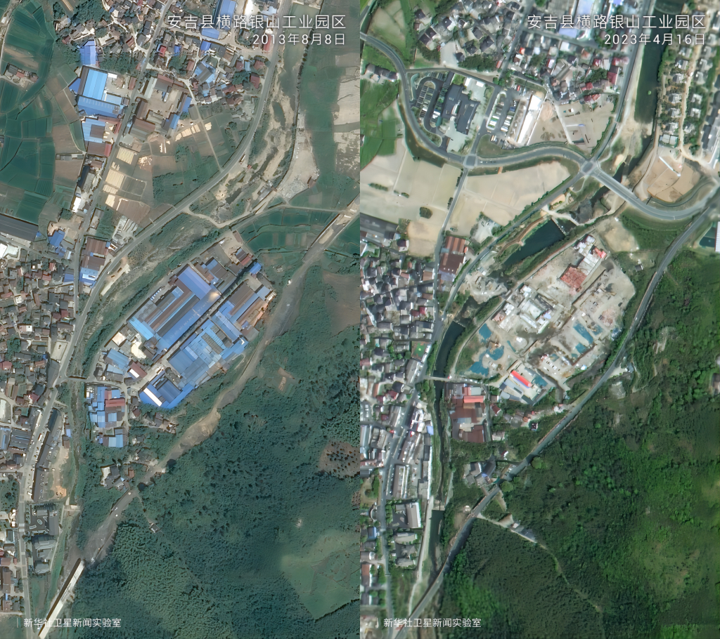 一組組衛(wèi)星對(duì)比圖見(jiàn)證了歲月流轉(zhuǎn)中的鄉(xiāng)村巨變。放眼浙江廣闊大地,這場(chǎng)跨越20年的美麗接力正煥發(fā)新的生機(jī)。