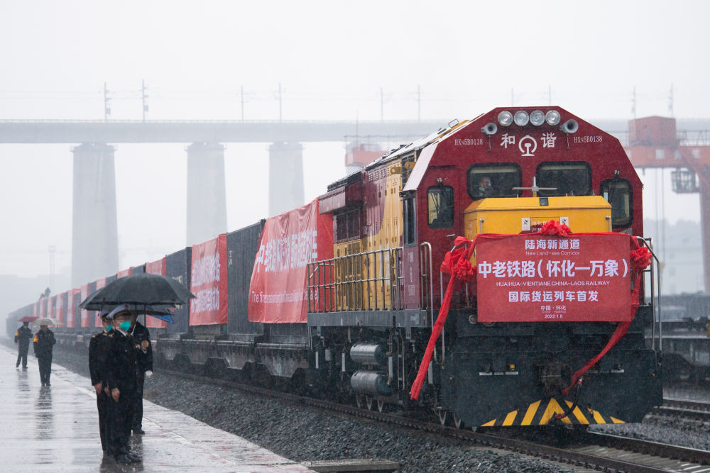 開往老撾萬象的中老鐵路(懷化—萬象)國際貨運列車在湖南懷化國際陸港準備發(fā)車(2023年1月6日攝)。新華社記者 陳思汗 攝