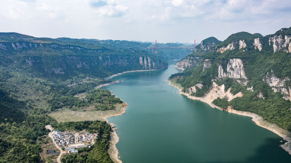 貴州省畢節(jié)市烏江源百里畫廊景色(2022年5月6日攝,無人機照片)。新華社記者 陶亮 攝