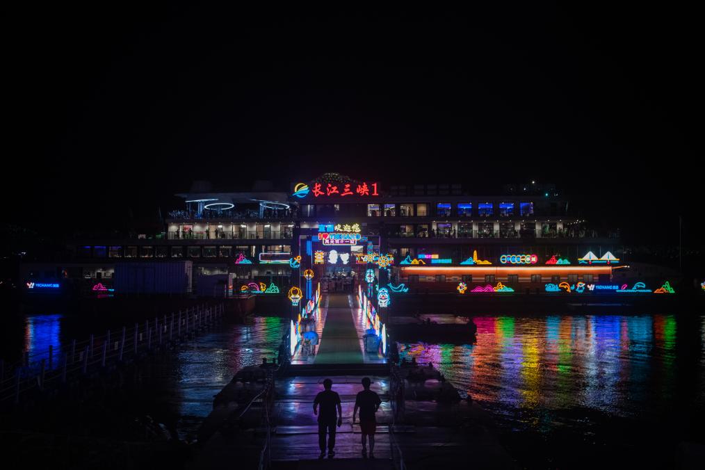 華燈初上,湖北宜昌長(zhǎng)江兩岸流光溢彩。乘坐“長(zhǎng)江三峽1”輪夜游長(zhǎng)江,聞不到刺鼻的油煙味,聽不到嘈雜的轟鳴聲,只有江風(fēng)習(xí)習(xí),夜色如畫。