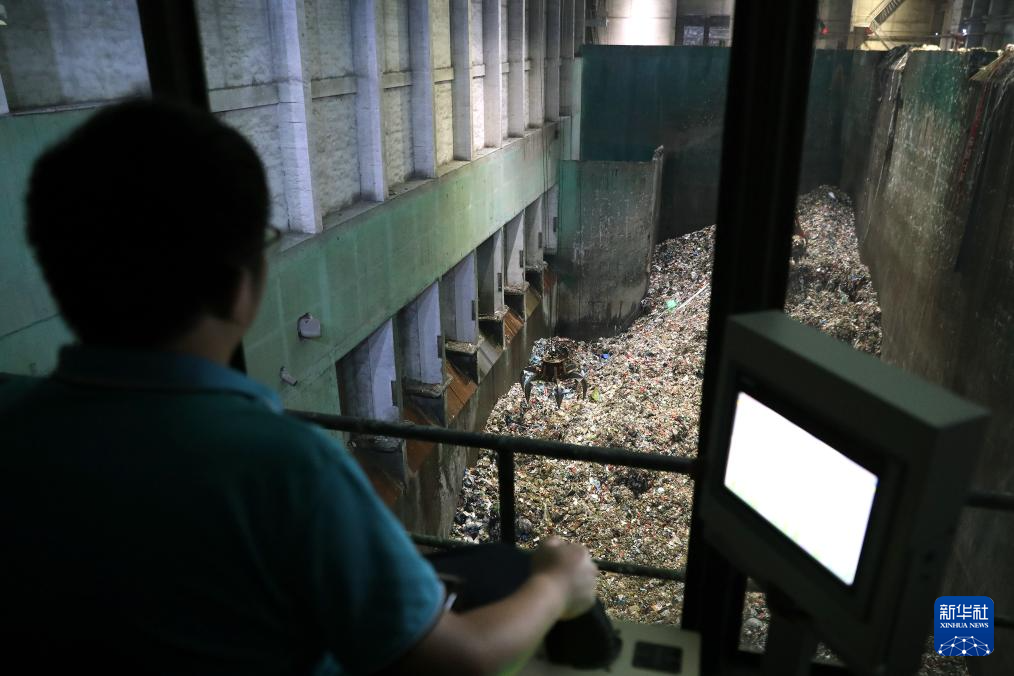 此時,類似抓娃娃機爪子的巨大垃圾吊,正將約8噸重的生活垃圾抓起并投入爐膛溫度高達(dá)上千攝氏度的焚燒爐。