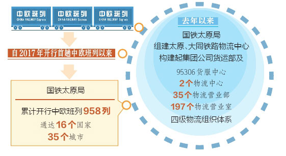 “自2017年開(kāi)行首趟中歐班列以來(lái),國(guó)鐵太原局累計(jì)開(kāi)行的中歐班列已有958列,通達(dá)16個(gè)國(guó)家、35個(gè)城市。”國(guó)鐵太原局貨運(yùn)部科長(zhǎng)田源介紹,“中歐班列已經(jīng)成為不沿海、不沿邊的山西省對(duì)外開(kāi)放重要平臺(tái)?!?/p>