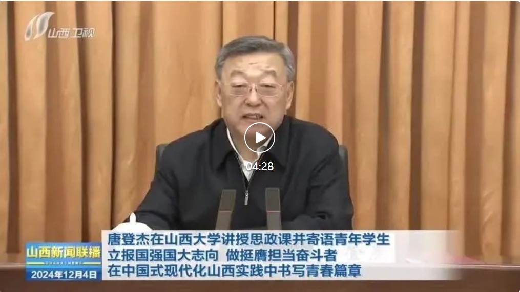 山西日報記者陳俊琦報道 12月3日,省委書記唐登杰來到山西大學(xué)講授思政課,深入學(xué)習(xí)貫徹習(xí)近平新時代中國特色社會主義思想和黨的二十屆三中全會精神,寄語全省廣大青年學(xué)生牢記領(lǐng)袖殷殷囑托,立報國強國大志向、做挺膺擔(dān)當奮斗者,在中國式現(xiàn)代化山西實踐中書寫青春篇章。省委常委、秘書長李鳳岐參加。
