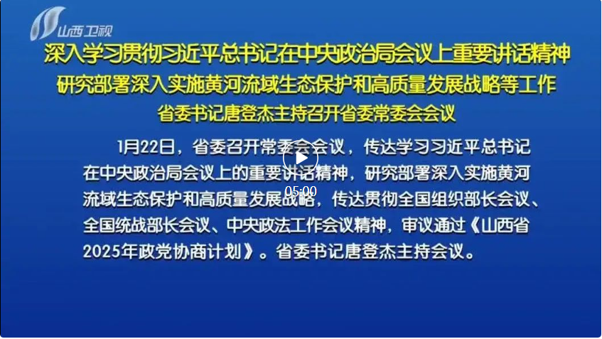山西日?qǐng)?bào)報(bào)道 1月22日,省委召開常委會(huì)會(huì)議,傳達(dá)學(xué)習(xí)習(xí)近平總書記在中央政治局會(huì)議上的重要講話精神,研究部署深入實(shí)施黃河流域生態(tài)保護(hù)和高質(zhì)量發(fā)展戰(zhàn)略,傳達(dá)貫徹全國(guó)組織部長(zhǎng)會(huì)議、全國(guó)統(tǒng)戰(zhàn)部長(zhǎng)會(huì)議、中央政法工作會(huì)議精神,審議通過(guò)《山西省2025年政黨協(xié)商計(jì)劃》。省委書記唐登杰主持會(huì)議。