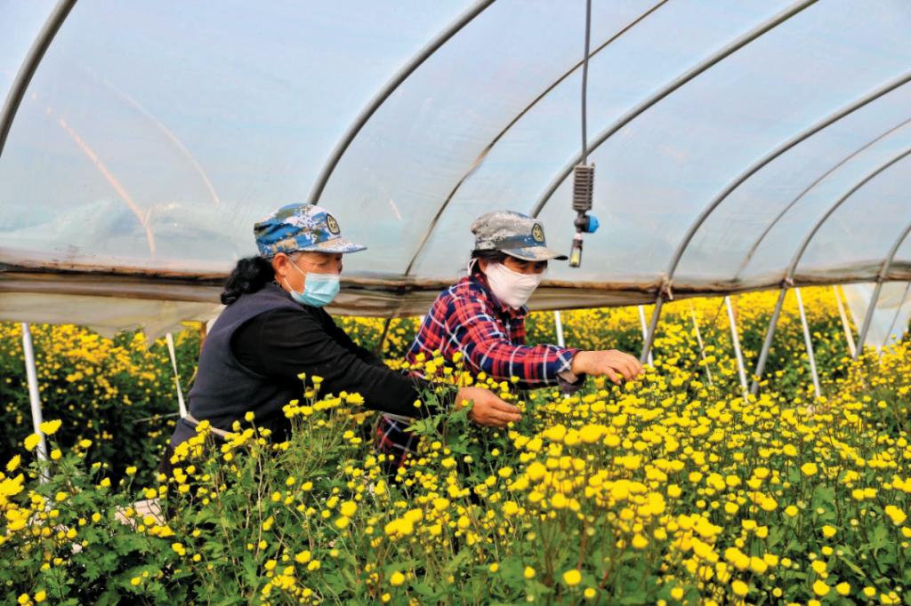忻口,因忻口戰(zhàn)役而名留史冊。而今,忻府區(qū)忻口鎮(zhèn)20個行政村齊心協(xié)力抱團(tuán)種起了皇菊。眼下正是菊花盛開的時節(jié),66座移動式大棚里,滿眼金黃,煞是喜人。