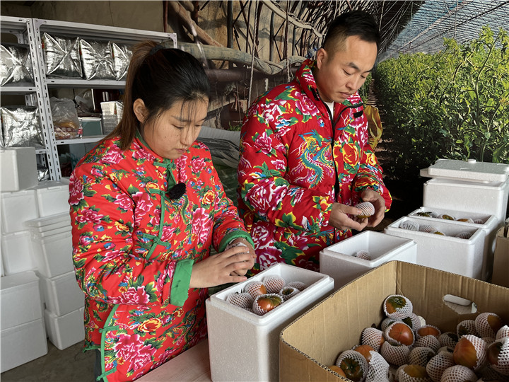 現(xiàn)在正值盤錦堿地柿子集中上市時期,王海濤和張爽每天都忙得團團轉。“今年訂單量比去年明顯增加不少,上升到每天200單左右?!睆埶f。