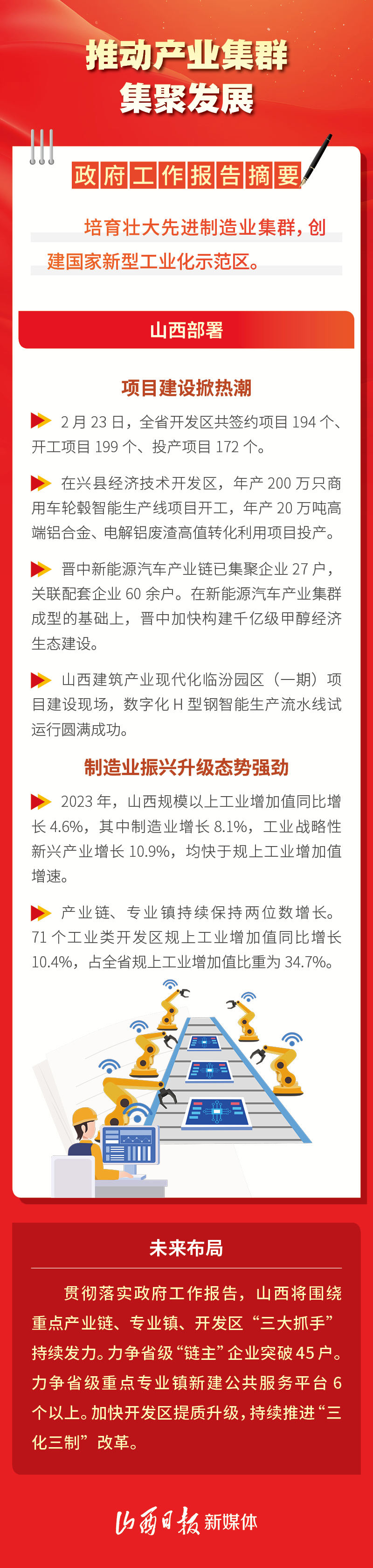 今年的政府工作報告,對制造業(yè)發(fā)展進一步提出明確要求,必將鼓舞山西在加快建設中部地區(qū)先進制造業(yè)基地的大路上闊步前進。