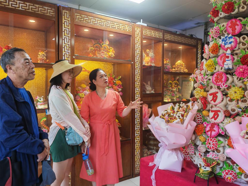 新華社西安6月19日電(記者孫正好)“沒想到一個面團(tuán),能被玩出這么多花樣!”在陜西韓城古城歷史文化街區(qū)的一家花饃店內(nèi),北京游客王華對著造型各異的韓城花饃發(fā)出感嘆。