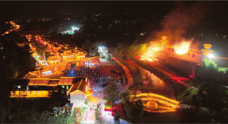 夜幕降臨,火花四濺,光影交錯,在裸眼3D技術(shù)打造的場景藝術(shù)下,一場《如愿大陽》實景戲劇悄然登場,婉轉(zhuǎn)的音樂和動人的故事仿若解讀著千年大陽鐵文化,讓游人懷揣著對歷史文化的探尋,沉浸式走進(jìn)這千年古鎮(zhèn),一睹往日恢宏……
