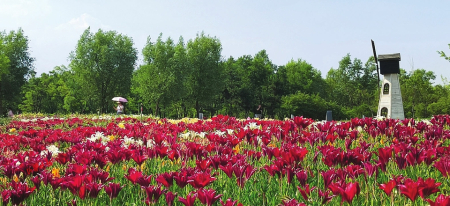 百合花種類繁多,形態(tài)各異。純凈高雅的白色、熱情嫵媚的紅色、明麗澄澈的橙黃、浪漫俏皮的粉紅、雍容華貴的紫色,形似漏斗,又如喇叭,或向上開花,張揚外翻、極端華麗,或含露低垂,矜持含蓄、超凡脫俗?;ㄩg蜂蝶飛舞,暗香浮動,游人三五成群,在花叢合影拍照,游玩嬉戲,好不愜意。市民王女士對這里贊賞有加:“看到這五顏六色的百合花,我的心情像盛開的花一樣,特別美!這里每季有每季的花開,每次來都有不一樣的驚喜和精彩。”