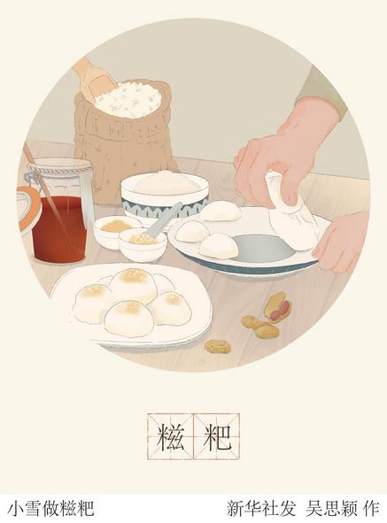 小雪輕揚,銀裝初上,冬天的景致格外美麗,這一時節(jié)的民俗活動也是豐富多樣的。華東師范大學民俗學研究所教授田兆元介紹,比如吃糍粑、腌臘肉、釀小雪酒等?!捌渲?,吃糍粑,是源于春秋戰(zhàn)國時期的風俗,相傳伍子胥在建城時將糯米蒸熟壓制成磚塊,然后放冷,既可以當城墻基石,又能抵御糧荒,后來就成了南方地區(qū)一項民俗?!?/p>