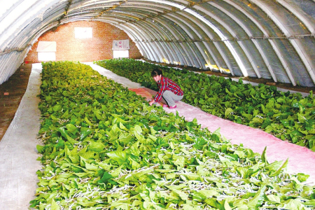 發(fā)展到現(xiàn)在,大棚養(yǎng)蠶已成為陽城縣群眾普遍采用的實用技術(shù),因大棚建在桑園邊,節(jié)省了桑葉的運輸成本,同時采用“地面條桑育”,一日給桑1次—2次,不僅喂養(yǎng)次數(shù)減少,而且便于方格蔟自動上蔟,減輕了勞動強度,減少了養(yǎng)蠶用工,可提高工效50%。