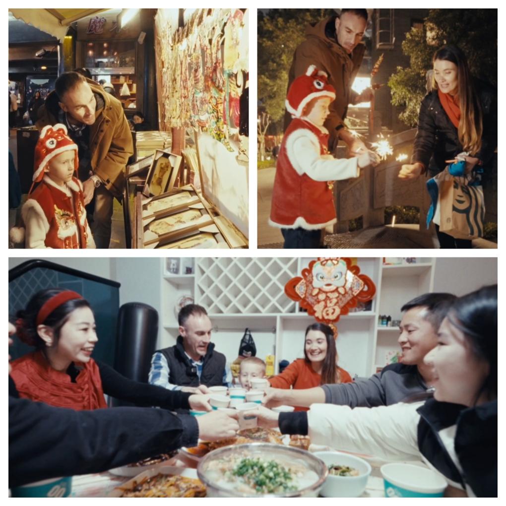 今年春節(jié),也是南非人安德魯一家搬來四川成都后的第一個中國年。安德魯一家對春節(jié)充滿好奇,渴望了解這個承載著深厚中國文化的節(jié)日。于是,他們邀請了幾名中國朋友一起歡度春節(jié),并到成都的大街小巷,沉浸式體驗各類年俗活動。寫福字、買年貨、吃團圓飯……他們也在這些傳統(tǒng)習俗中,感受到中國人春節(jié)“回家”的含義,體味團圓的意義。