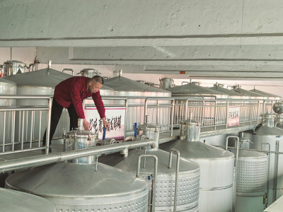 清徐葡萄酒有限公司發(fā)酵車間,工作人員正在檢查發(fā)酵罐。本報記者晉帥妮攝