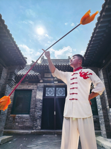 “風(fēng)火流星”是集山西民間雜技與武術(shù)精髓于一體的社火表演藝術(shù),2008年入選國(guó)家級(jí)非物質(zhì)文化遺產(chǎn)代表性項(xiàng)目名錄。它以繩索系鐵籠,內(nèi)置燃燒木炭,表演者通過(guò)手、肩、腰等部位的協(xié)調(diào)發(fā)力,讓鐵籠高速旋轉(zhuǎn),呈現(xiàn)出“風(fēng)助火勢(shì)、火借風(fēng)威”的視覺(jué)效果。