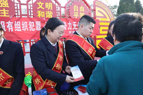 為進(jìn)一步提升人民群眾對黑惡勢力的辨識(shí)力和防范力,推動(dòng)形成“全民知曉、全民參與”的法治社會(huì)氛圍,3月20日,市檢察院聯(lián)合忻府區(qū)檢察院開展了《反有組織犯罪法》普法宣傳活動(dòng)。