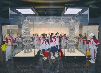 5月18日,太原市清徐縣山西晉韻文化產(chǎn)業(yè)園內(nèi),中小學生研學團在磚雕藝術博物館與古建筑模型博物館內(nèi)感受古建筑的匠心巧思。本報記者王瑞瑞攝