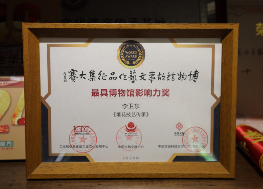 如今,堆花藝術(shù)已成為山西文旅的一張亮麗名片。在“晉地寶藏·山西博物館之旅”中,堆花藝術(shù)備受矚目,吸引了無數(shù)游客的目光。馮驥才先生的“國粹”題字,更是對堆花藝術(shù)的高度贊譽(yù),為堆花傳承人指明了前進(jìn)的方向。