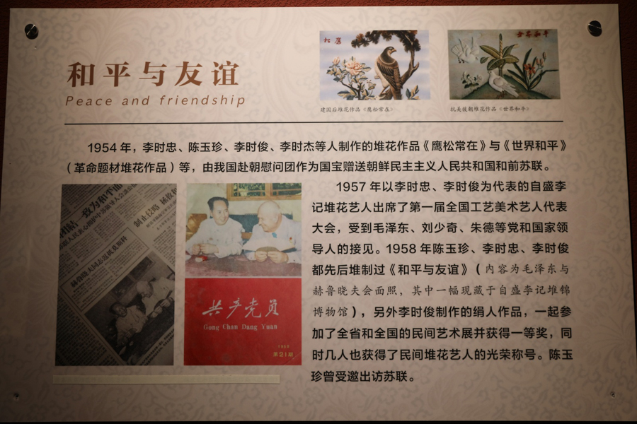 然而,歷史的波瀾并未停止。中華人民共和國成立后,堆花藝術(shù)經(jīng)歷了從繁榮到衰落,再到復(fù)興的曲折歷程。在黨和政府的關(guān)懷下,老一輩堆花藝人積極響應(yīng)號召,成立堆花小組,將堆花藝術(shù)服務(wù)于國家建設(shè)和人民生活??姑涝陂g,堆花作品作為國寶贈予朝鮮,見證了中朝兩國人民的深厚友誼。