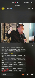從山西古代壁畫隱藏的密碼、傳統(tǒng)壁畫艷麗制作工藝的挖掘研究,現場觀眾聽得津津有味、頻頻點頭,直播間網友更是踴躍留言、頻繁互動,網友@寸草三心留言:“非常好的講座,學習到很多歷史知識”;還有網友留言探討山西古代壁畫的重要價值。直播收尾前,如何更好地保護山西低等級壁畫?介子平老師表示,文物不分“高低”,每個人審美不一樣,無論是低等級別還是其他級別,山西古代壁畫都值得大家去保護、去珍藏、去解讀;史宏蕾教授也呼吁,大家一定要關注那些散落在鄉(xiāng)間田野里的低等級壁畫,低等級壁畫中也有極其重要的價值。