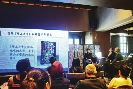 這場講座備受文博迷們關注,預告一經發(fā)布,便達到報名滿額的狀態(tài)。當日,現場更是座無虛席,不乏默默站著聆聽的觀眾。專家們帶領大家穿越千年時光,從漢魏墓室壁畫開始,將壁畫的線條、配色、技術、布局等一一揭曉。史宏蕾教授從平陸縣棗園漢墓壁畫、大同沙嶺墓、太原婁睿墓講起,壁畫上的鑿井青龍、白虎和玄武形象、還原農業(yè)生產景象的牛耕壁畫、一對墓主人夫婦的畫作以及宰羊圖……這些畫作線條優(yōu)美、故事豐富、將當時的生活狀態(tài)表現得活靈活現。史宏蕾教授表示,古代畫匠可以被稱為“巨匠”“藝術家”,他們的審美、原創(chuàng)力都堪稱為領先,很多時候她更愿意稱這些畫匠為“丹青專職畫家”。