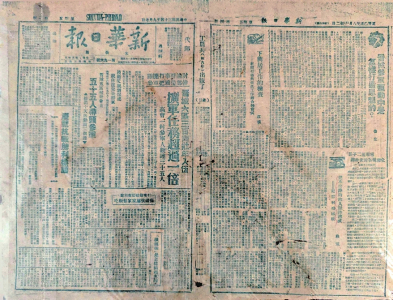 1945年9月7日,中共太岳區(qū)委機關(guān)報《新華日報》(太岳版)在第三版全文登出了日本投降的原文,還將一版、四版內(nèi)容用少見的藍色油墨印刷,以顯示其具有特殊的紀念意義。王海勇藏