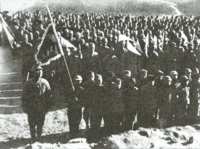 八路軍某部和群眾一起采集樹葉充饑,堅持抗戰(zhàn)。