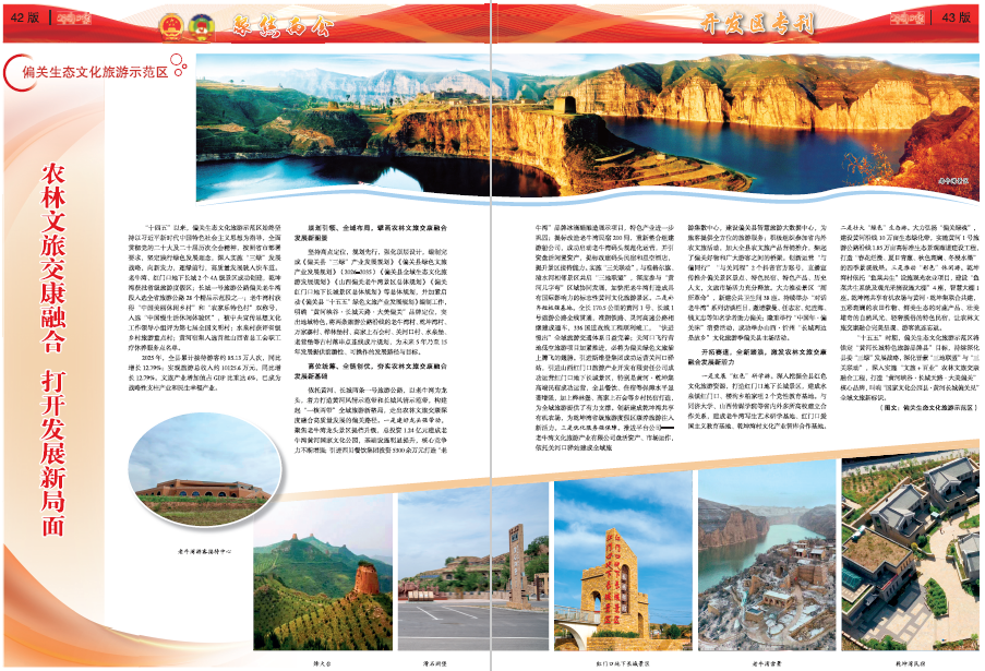 “十四五”以來(lái),偏關(guān)生態(tài)文化旅游示范區(qū)始終堅(jiān)持以習(xí)近平新時(shí)代中國(guó)特色社會(huì)主義思想為指導(dǎo),全面貫徹黨的二十大及二十屆歷次全會(huì)精神,按照省市部署要求,堅(jiān)定踐行綠色發(fā)展理念,深入實(shí)施“三綠”發(fā)展戰(zhàn)略,向新發(fā)力,逐綠前行,高質(zhì)量發(fā)展駛?cè)肟燔嚨馈@吓?、紅門口地下長(zhǎng)城2個(gè)4A級(jí)景區(qū)成功創(chuàng)建,乾坤灣獲批省級(jí)旅游度假區(qū);長(zhǎng)城一號(hào)旅游公路偏關(guān)老牛灣段入選全省旅游公路28個(gè)精品示范段之一;老牛灣村獲得“中國(guó)美麗休閑鄉(xiāng)村”和“農(nóng)家樂(lè)特色村”雙稱號(hào),入選“中國(guó)慢生活休閑體驗(yàn)區(qū)”,被中央宣傳思想文化工作領(lǐng)導(dǎo)小組評(píng)為第七屆全國(guó)文明村;水泉村獲評(píng)省級(jí)鄉(xiāng)村旅游重點(diǎn)村;黃河宿集入選首批山西省總工會(huì)職工療休養(yǎng)服務(wù)點(diǎn)名單。